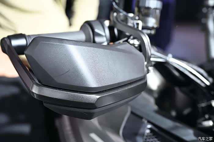 最后一台要介绍的就是钱江900,这台车在设计上依旧延续“骁”系列的家族化设计,标志性的鸟嘴宽大的油箱和手把,锐利的大灯等等都展示出非常高大的车型形象。的确作为一款准公升级的休旅车型,不管是原厂护杠、护手、铝合金护板、辐条轮毂、24升大油箱等等都能轻松胜任长途摩旅的需求。