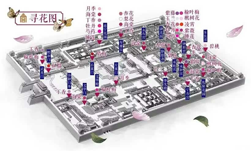 除了以上几处赏花地点,还有慈宁宫花园、文华门、承乾宫等处也极受欢迎,等到来年春光明媚时,不妨亲自一览。
