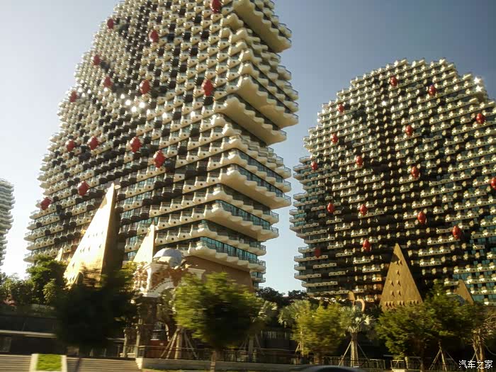 去三亚高铁站的路上,看到了这造型奇异的楼群,这就是著名的“美丽之冠七星奢华酒店”