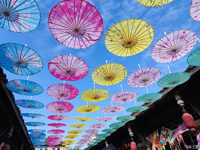 漂亮的油纸伞,民国风情的建筑,蓝蓝的天空……这都汇聚在一处很有意思的古镇-安仁,我是三月中旬去的大邑县安仁古镇,当时是和朋友一家一起约着出去玩,主要是带上孩子一起,让孩子们能有相聚的时光。安仁古镇距离成都不算远,六七十公里的路程,开车一个多小时就到了,我们是上午出发的,到了差不多中午,然后吃了个早午饭,才进古镇里面逛,古镇里面其实也有吃的,但是感觉有点烫人,味道暂且不说,价格肯定比景区外面的贵一些,而且大邑县的血旺肥肠是相当出名的,到这边是必定要尝一尝的。