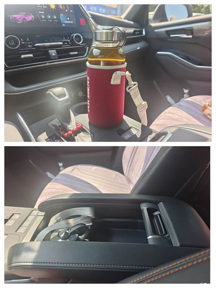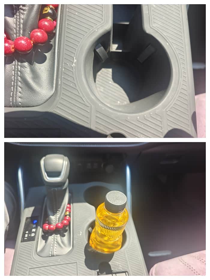 原来的车,把矿泉水瓶放进去,由于瓶的直径小于杯架,车一动,水瓶来回晃动,咣当咣当响,令人心烦。皇冠陆放的两个杯架各有2个伸缩卡销,矿泉水瓶放进去,2个卡销会稳稳抱住水瓶,不再有任何异响。