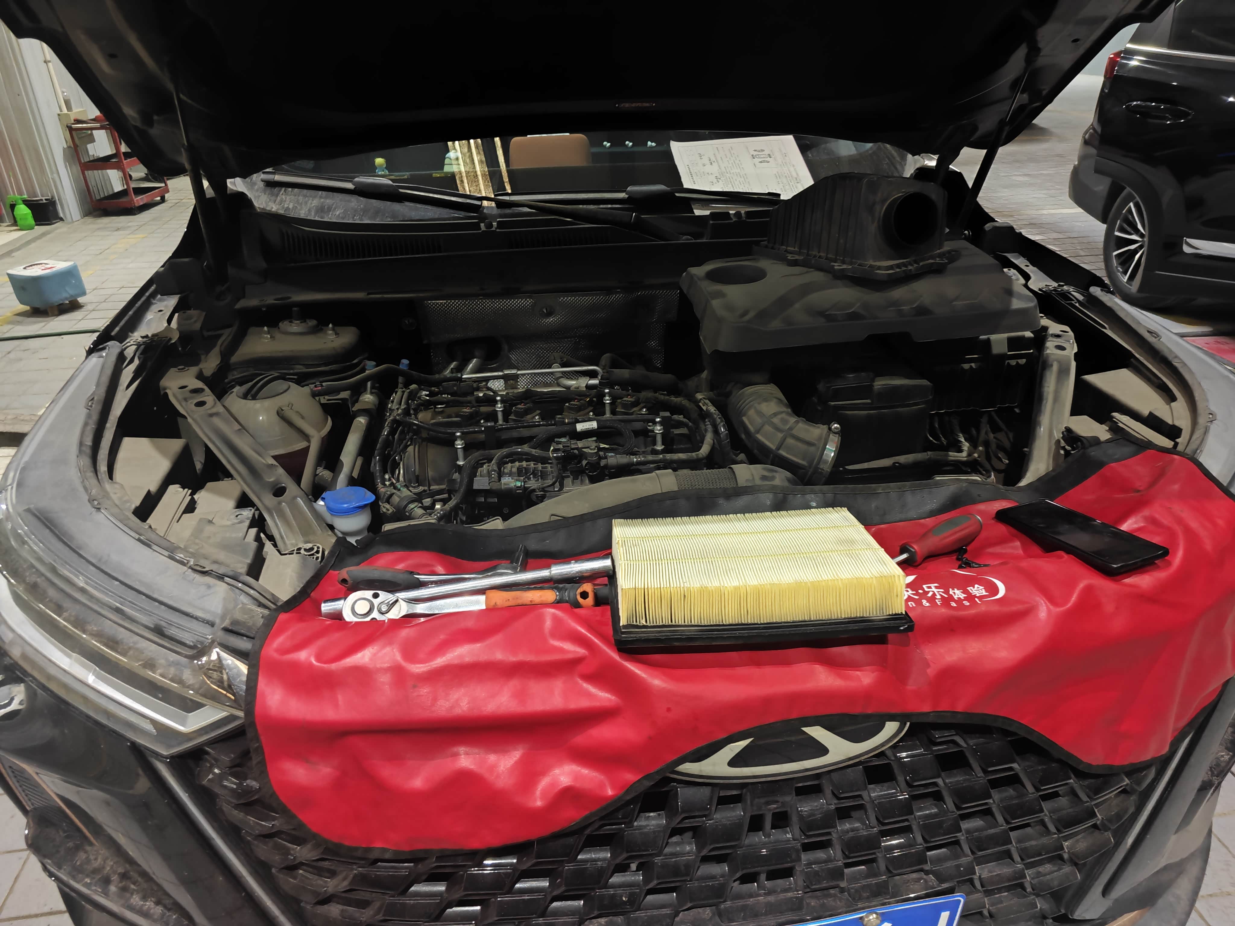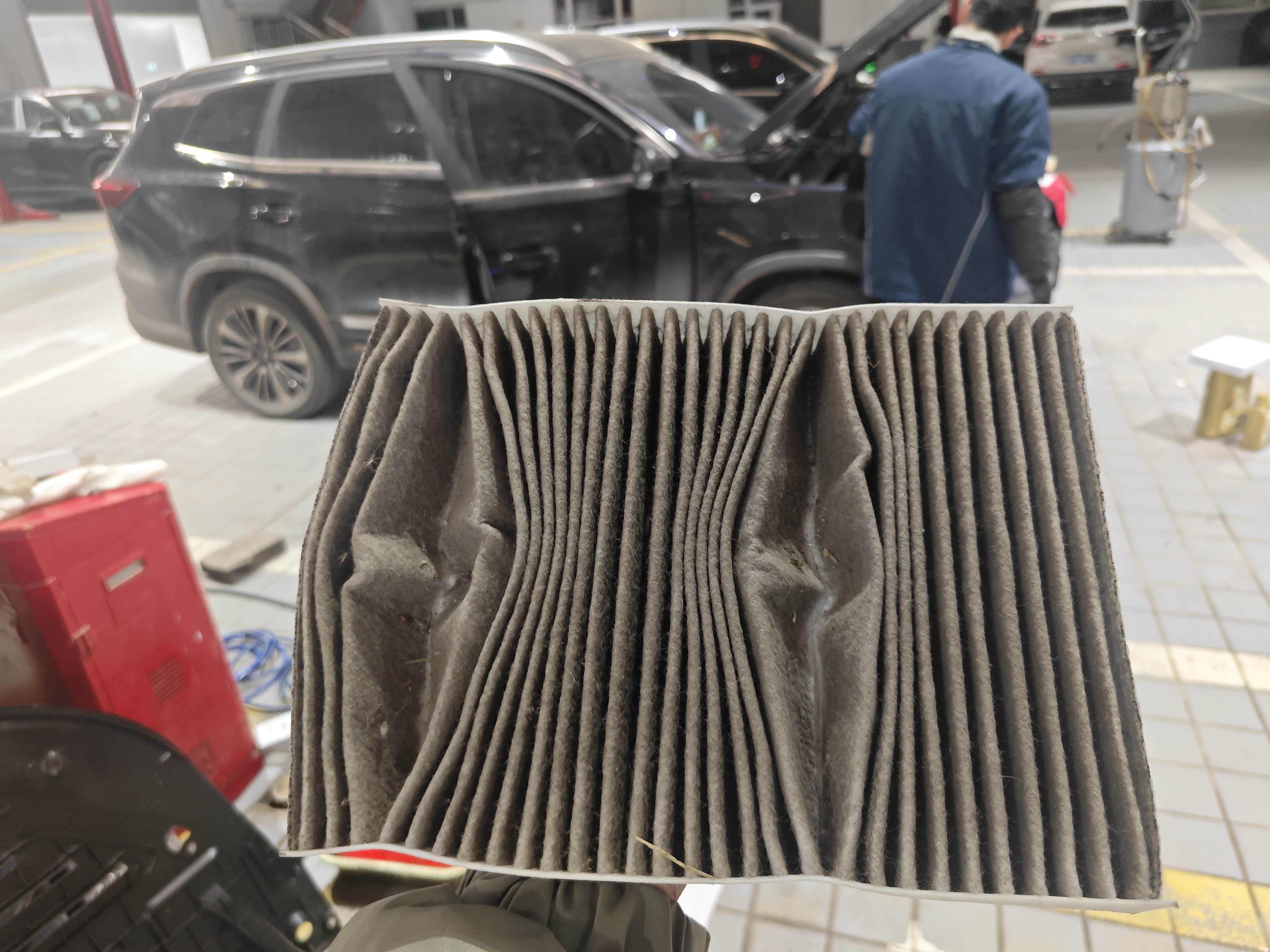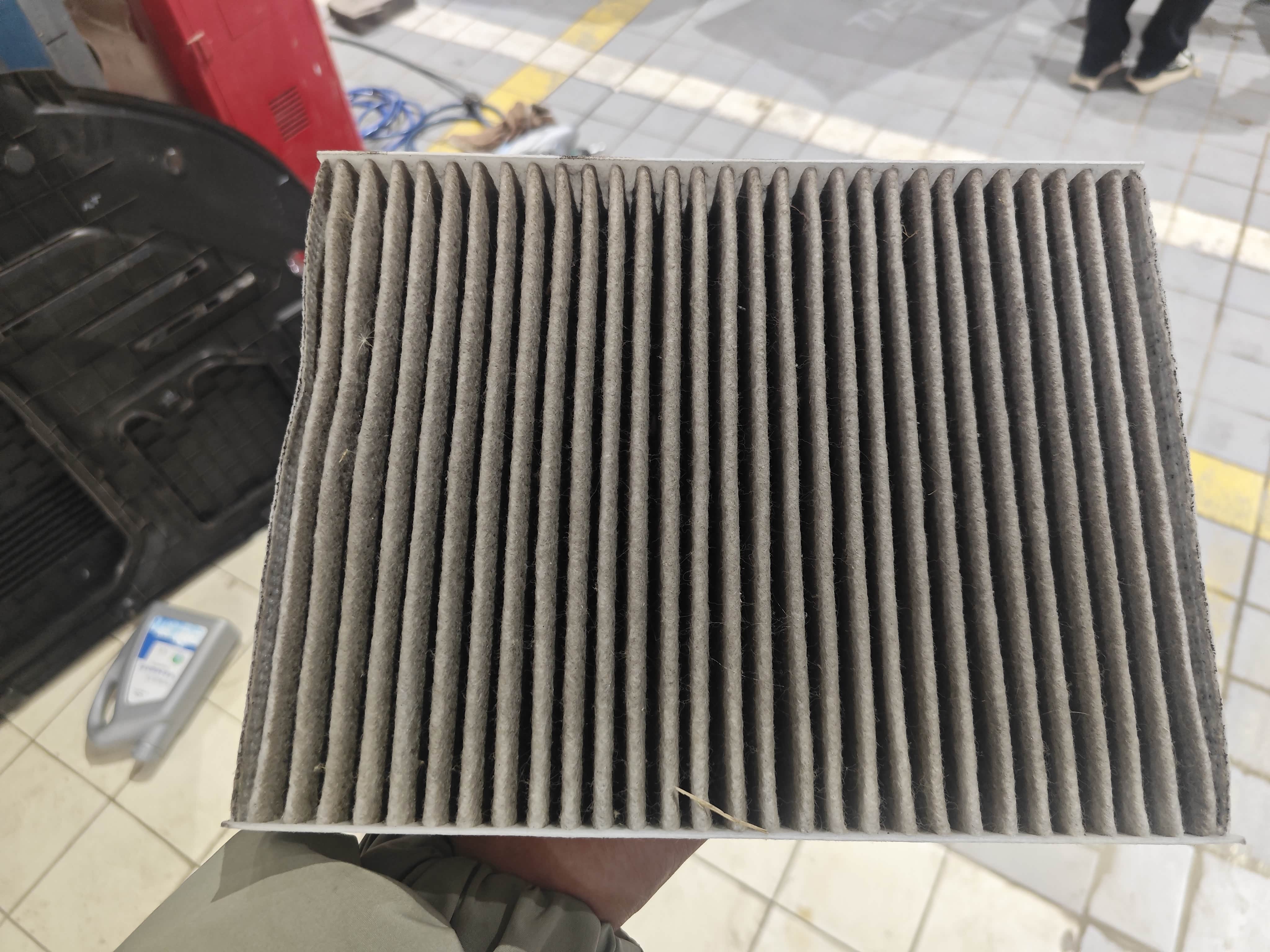 ?- 空气滤芯:拿出来吹了吹,师傅说还能再用一段时间,等下次保养再换就行。