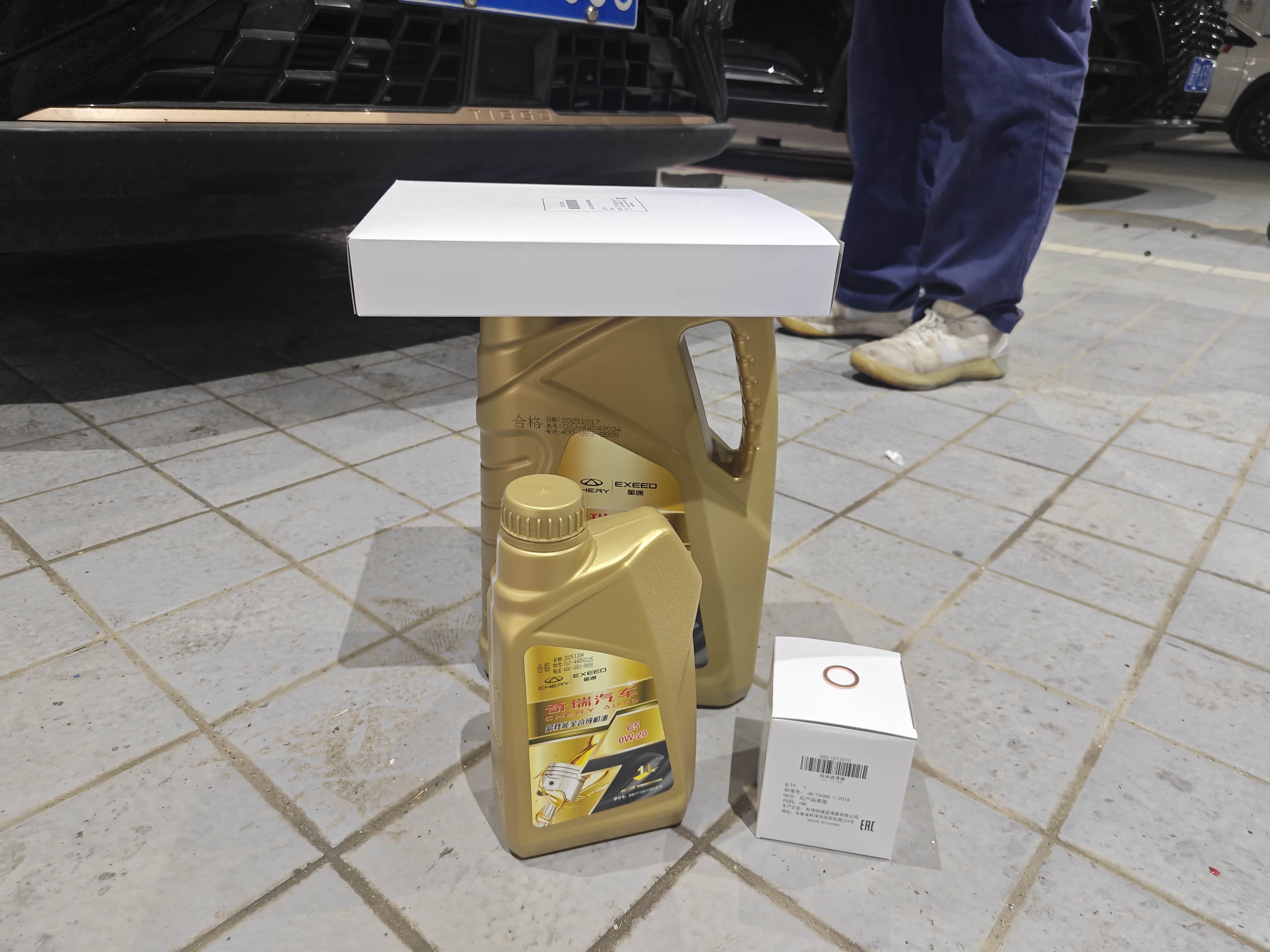 咱们2.0T的发动机对机油要求高,这次用的是奇瑞原厂高性能全合成机油,型号0W-20,一共加了5升,光机油材料费就298块。