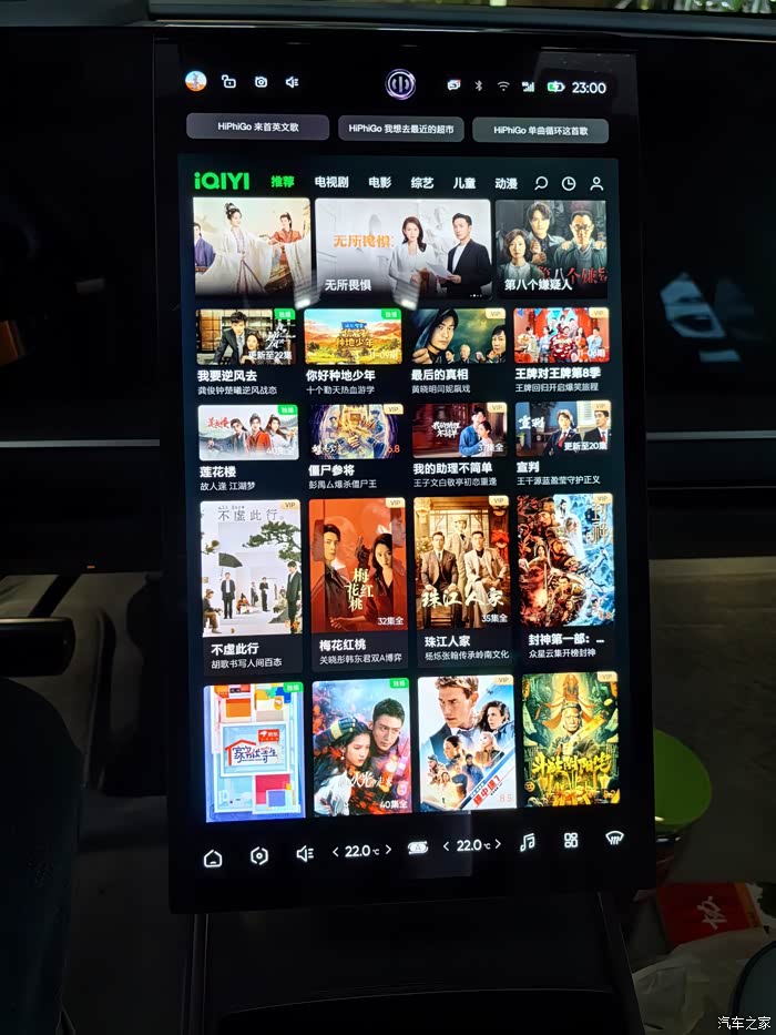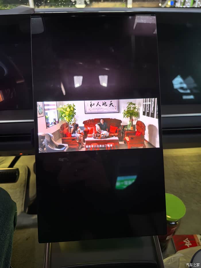 第二就是用中控竖屏看视频软件,但是由于竖屏的原因,只能够在竖屏中间的部分进行播放,显示比例就很小了,所以hiphiy如果想在充电时看视频,最好的位置就是用副驾驶的副屏和后排顶部安装ipad观看了,就非常好了。