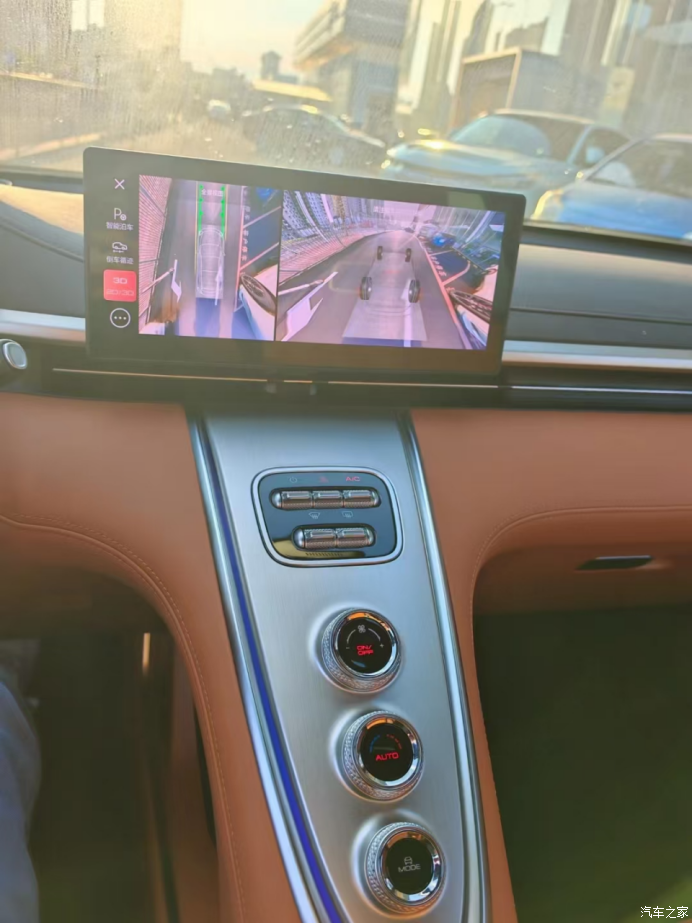 离开红梅新村,经过的道路比较狭窄,把360全景开起来,中控屏上能看到周围情况,不用车里的人下车就能安全通过了。