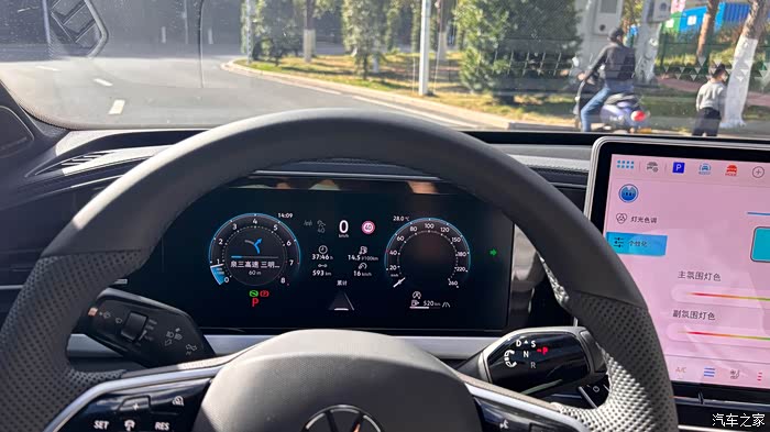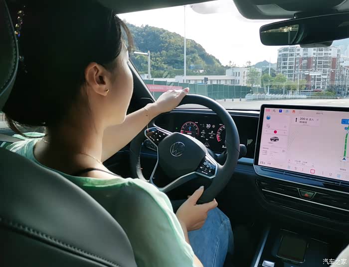 方向盘转向很轻盈,指向也没感觉到什么虚位,市区道路操作起来比较轻松,开起来还是比较顺手。刹车还是感觉初段偏软,不会一踩就有的感觉,前半段有一点点的虚位,要稍加深踩踏板更加线性,刹车就会随之而来,这种感觉在城市道路行驶时候,刹车脚感非常好,即使你深踩一点儿,车身也不会受到很大的作用力点头。