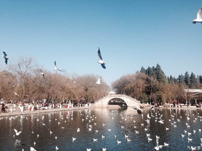 第三天行程是黑龙潭梅花展,瀑布公园,海埂大坝喂鸟之后返程。我发现能坐车的人都不情愿开车,小舅抱恙,三舅说贵阳那么糟糕的交通状况锻炼出来的人,就交给你跟车了。于是乎,本狗就从副驾千金变成了司机马夫!