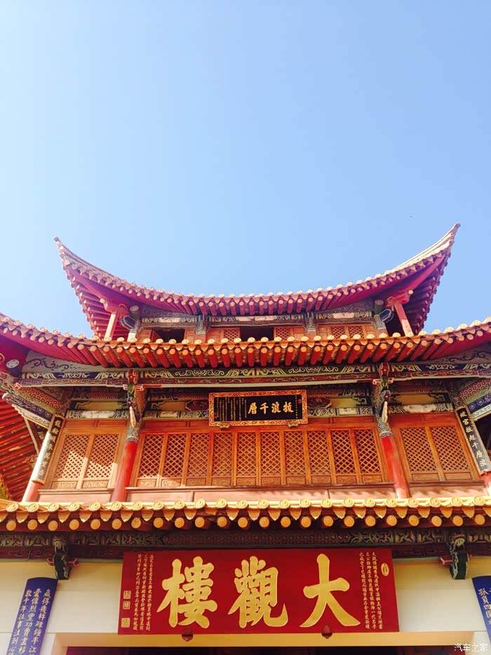 一小时左右后开始渐渐有缓行,春暖花开出门游玩的车辆增多,刮擦追尾难免,另外在嵩明段由于有滇渝高速汇入,车流量增大,不仅节假日,平日里也会偶尔堵车。过了嵩明段我们没有直接进城,因为大家都是大路痴,导航经过环线,第一个目的地为大观楼。