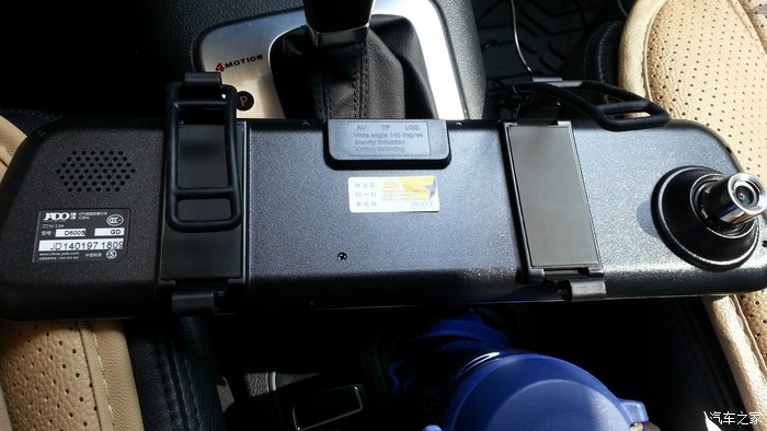 这个惠普的是独立装,从这一设计,我还是比较偏向记录仪的独立设计,因为我平时开车,看中间的倒车镜比较多,所以要求比较高清,而装了捷渡的蓝色防炫倒车镜,白天看后面车辆不是太清楚。
