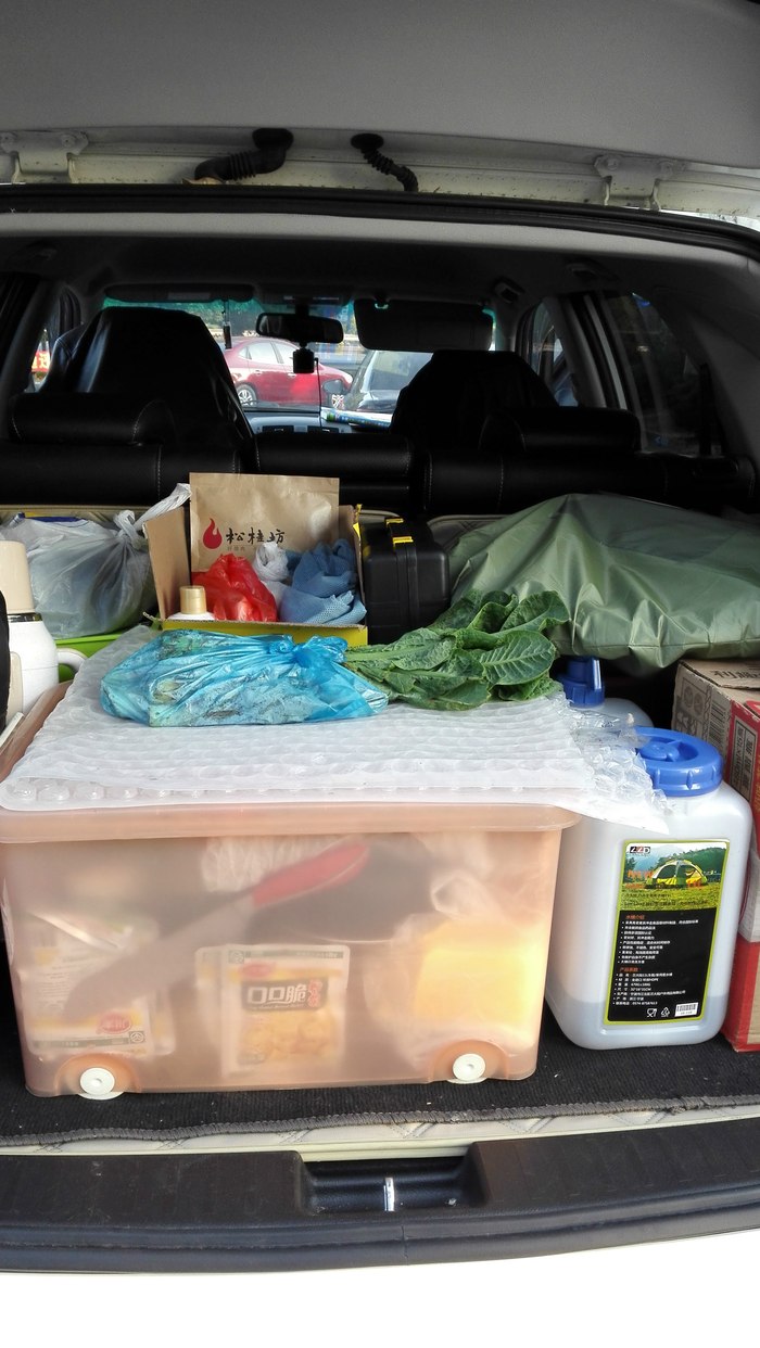 老婆考虑问题比较周到天冷的到天热的衣服,做饭用的锅,碗,卡式炉,各种调味品。常用药品。充气泵,脱困绳,工兵铲。车用淋浴器,简易帐篷,水箱,水桶被子。富士X10和佳能5200.俩个相机及手提电脑方便在路上不怎么影响我炒股。俩个折叠椅等零零总总装满了一车。