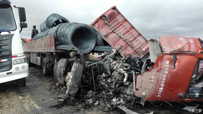 遇到车祸,看上去够惨烈的。我们堵在五十多辆车后面。