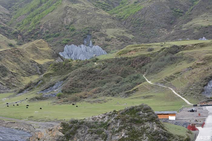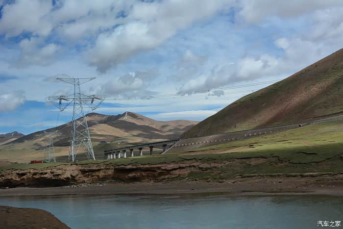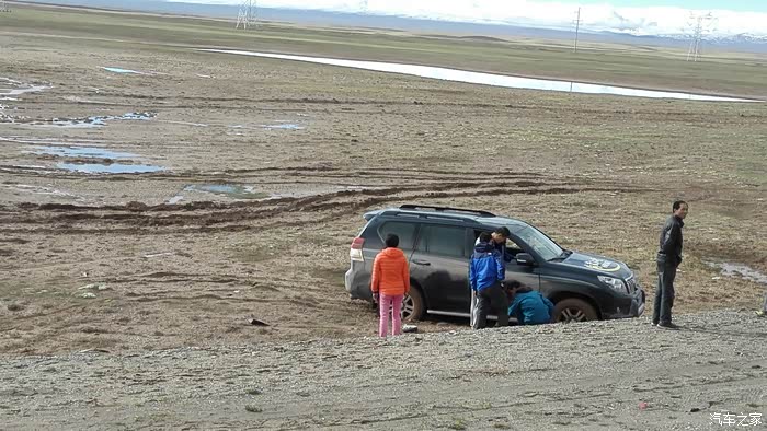 这辆车有四驱也下去结果也是不动了。我们等了一个小时看看见右边有本地车在青藏铁路的路基边开过去,大概离公路有100米的样子,看得见那边有水塘。有车辆在草地上碾过的痕迹。一些车辆开始掉头从那里过。阿杜过来说从下面走,看看前面也知不道什么时候能通咬牙跟着走吧。把车子开下公路后,就是草地挂1档保持一定的车速跟在本田车后面,来到水塘前正好对面过来一辆帕萨特在这个水塘里陷住了,因为过水塘后就是铁路路基必须马上转弯,我让阿杜让我先开,把S6后退了50米然后也是1档加速通过水塘。还好没有陷住。开了500米样子有一条土路上公路坡度有点陡,关键是车上了公路也必须急打方向盘,对面车道停了车一个不好就会冲撞到对面车辆,这时候感觉S6有些偏大,老婆有点担心要下车,我说没关系这点驾驶技术我还是有的。在一档冲上公路后急带刹车和打方向盘有惊无险的通过了。