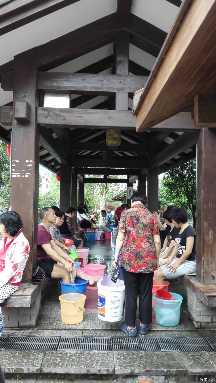 就是这口有名的井。水温非常高,没有20分钟以上脚放不下去。而且随便多少人在打,水位不会下降。廊里座位免费先到先座,水得自己拎。