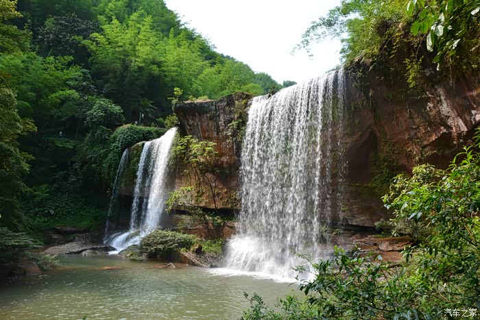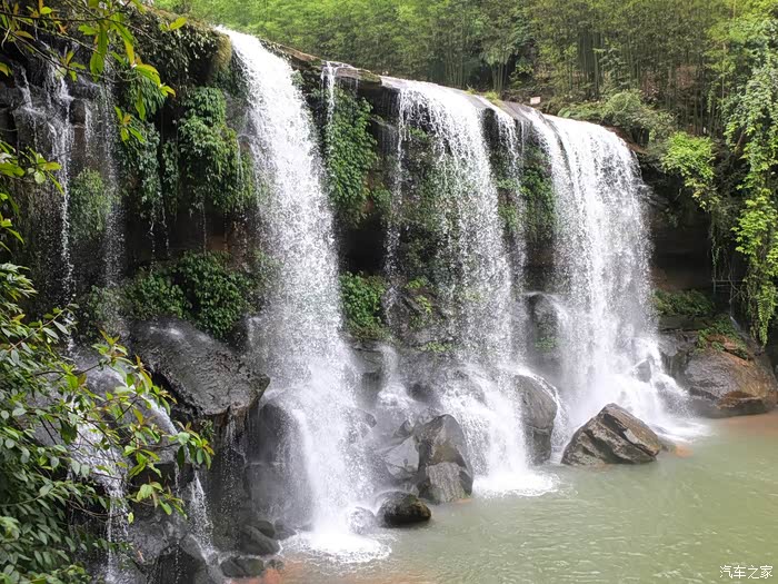 5月2号。按计划去离温汤镇十几公里明月山风景区游玩。门票80元。山不高,但是瀑布不少,水量蛮大。