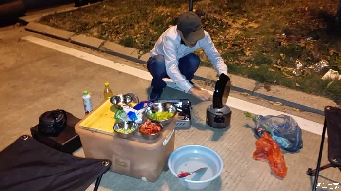 晚上7点在服务区做第一顿饭先练练手。虽然出过多次门,但是在外面自己烧还是第一次,有点不习惯和不好意思。老婆说做做就习惯了。