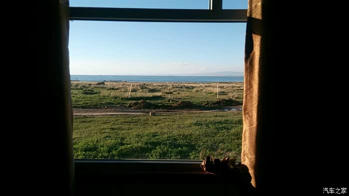 第一个停车地点青海湖的黑马河镇。直接可以把车开到湖边。