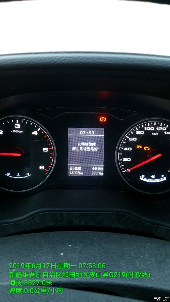 故障灯亮了两个,空调正常,发动机声音正常,水温正常,机油正常,动力缺失,爬坡1~2档,可能是高反,没有退路,只能前进!