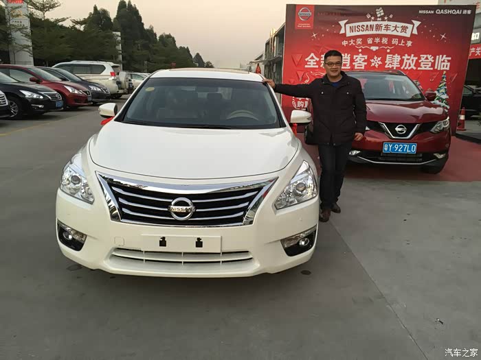 最后是天籁,人家说娶老婆要缘份,但我也说买车也是一样也要车缘。刚说到十一开始转型天籁且当时在10月3日还差点在老家买了2.5领先版,后来因为和销售差3000元谈不拢,错应该说是2000元谈不拢。当初我说20万整包50万全保包牌下地但销售一直要求要20.3万,最后我加到20.1万,可销售还不肯,一直磨到过完了国庆假期还谈不拢,所以我又回来广州上班了,也从而开启了选天籁之行。 回到广州后各大网站、搜索天籁群、浏览汽车之家天籁论坛等一系列了解,最终在11月初开始订车之行。这个订车之行也是一波几折。在11月上旬,和几个车友准备去定2.5车型,我订2.5领先版,其他车友订2.5科技版,可订车过程中销售才告知如果贷款买车后如果广州指标中签了,需要迁回广州牌得起码要贷款12个月然后提前还贷也要一笔违约金。最终我没有去订车,其他几个车友订了2.5科技版。接着在往后的2周我又继续结交车友和了解车的信息,这次选择的车型是2.0舒适版白色了。订车当天(2015年11月21日)我们一行十几个人,上午先去广州车展议价,可车展的价格实在太高了,原以为这个大型车展价格降幅大,哪知道失望了。然后我们十几个人聚集后又出发去佛山某4S店订车,最终我11月21日傍晚订了2.0舒适版白外米内车型,价格也是非常非常的好,性价比超高。附送几张广州车展靓车相片,天籁相片后续。。