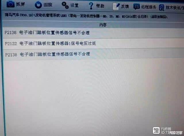 故障分析。车子加速不畅,一般需要先检测油泵压力,但是本车故障灯亮时同时加速无力。所以需要读取发动机故障码,分析数据流。