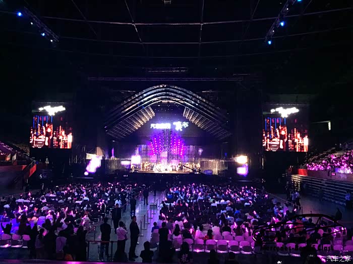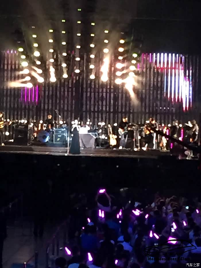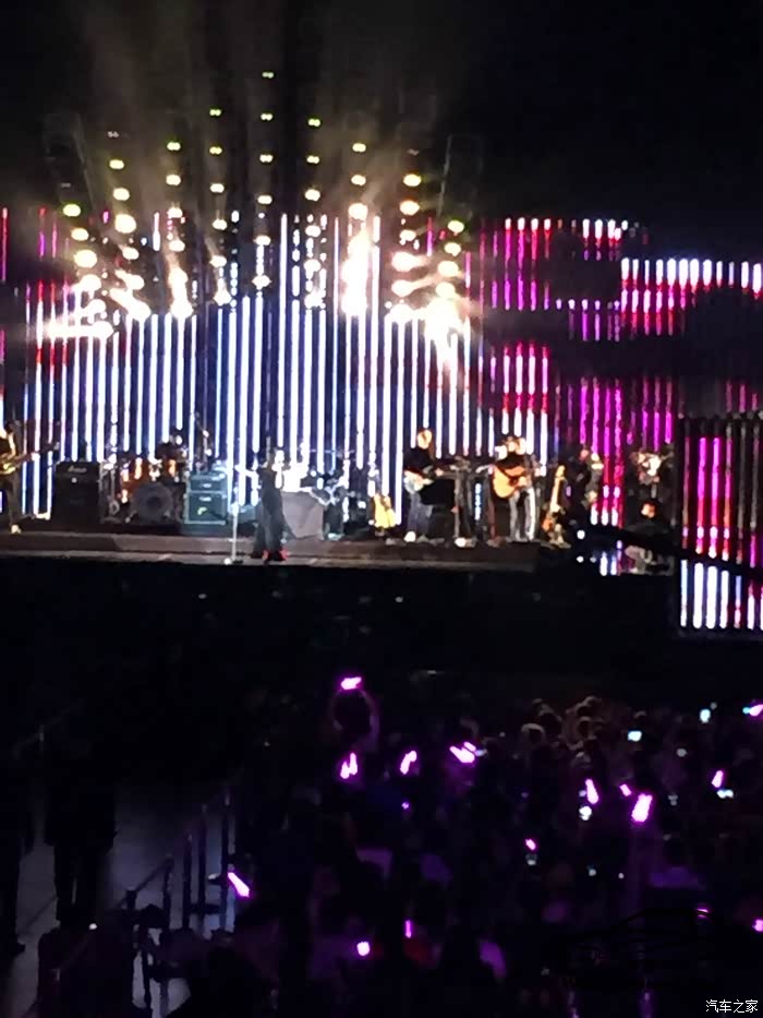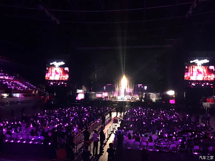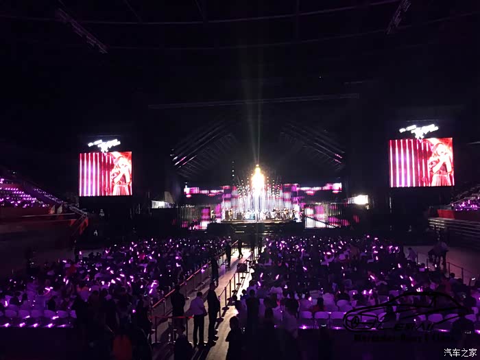 进入场地了,一片紫色的海洋,另外提一嘴,这次汽车之家的演唱会真的用心了,连荧光棒都是专门定做的,上面印有汽车之家LOGO还可以根据后台控制变换颜色和闪烁,场面很是漂亮