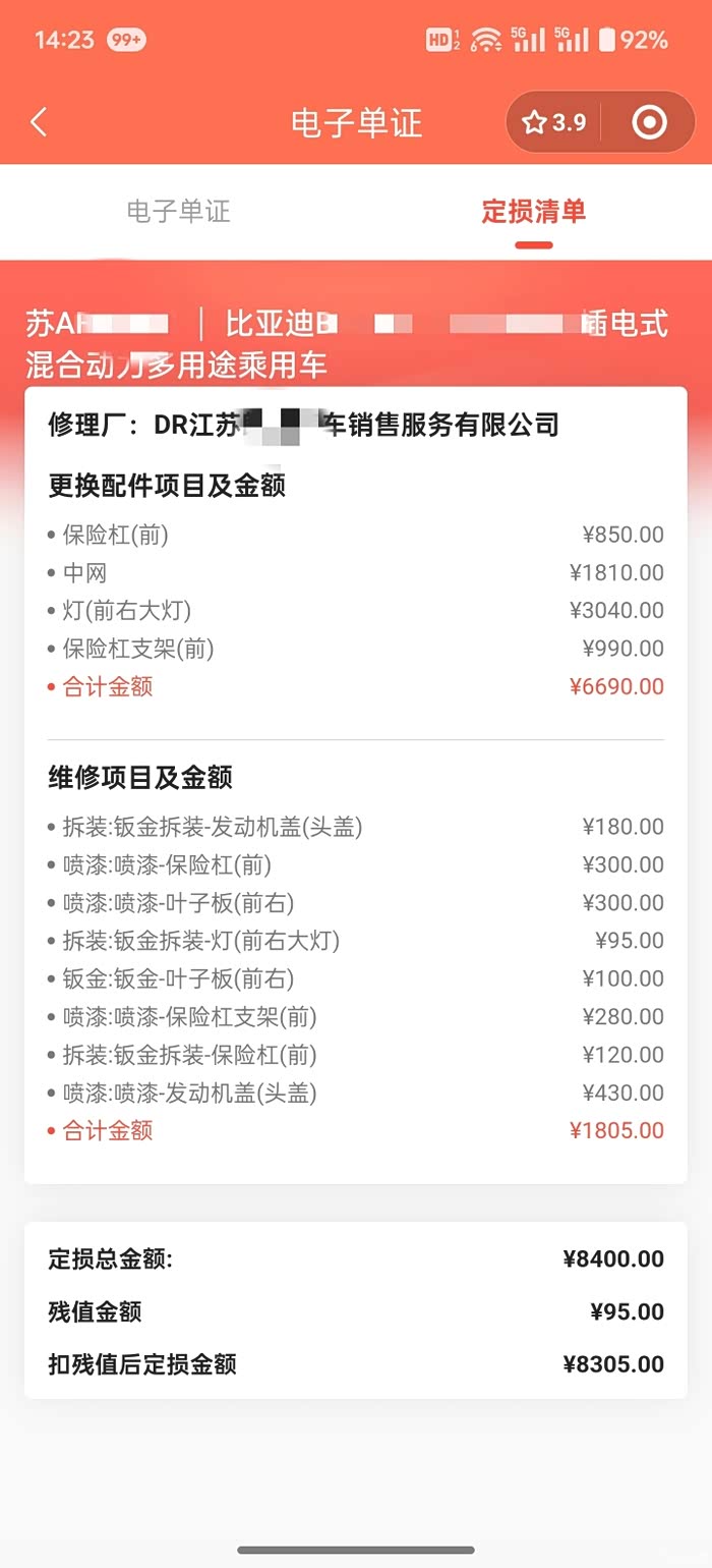 追尾 我全责 车丢4s去了 估计一个多星期修好 换中网 右大灯 引擎盖钣金 之后再发详单