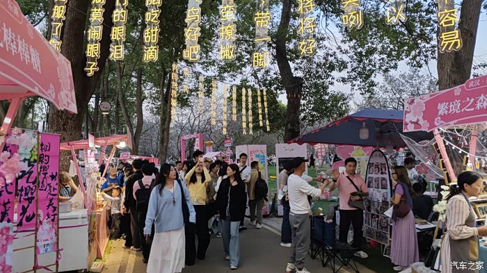 东湖樱园的。美食街还是打扮的很漂亮,很多人都在这里打卡参观,我们在这里也逛了好久,买了很多纪念品,樱花园就在隔壁,又能看樱花,又能逛集市,又能听歌,太舒服了。