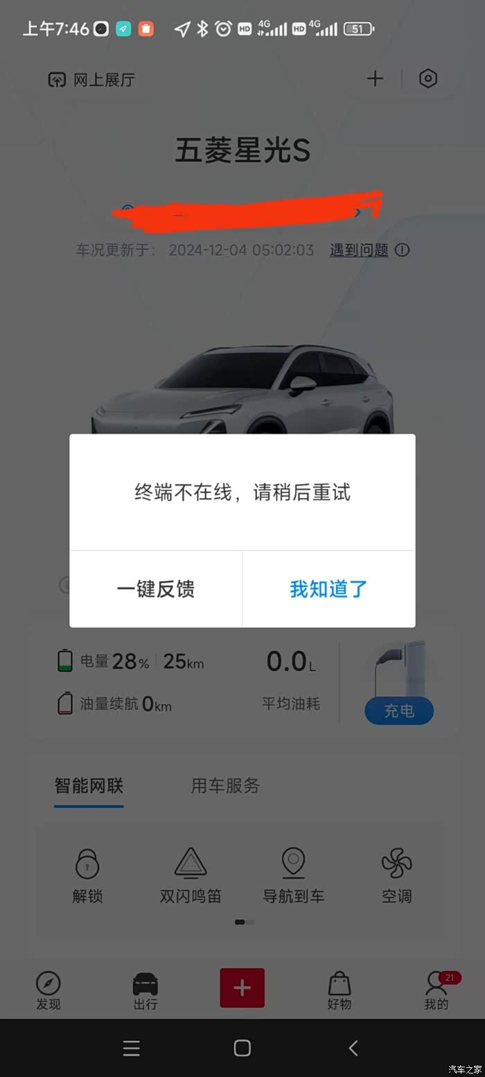 今天9:40左右,救援成功,车辆保持开启状态,主要目的是给小电池充充电。大约1小时后,通过app远程锁车,显示已锁车。晚上6:00多接到邻居电话,说车辆行车灯没有关闭,我想让他开车门,车辆下电。此时车门是锁着的,我远程解锁,此时app请求失败。