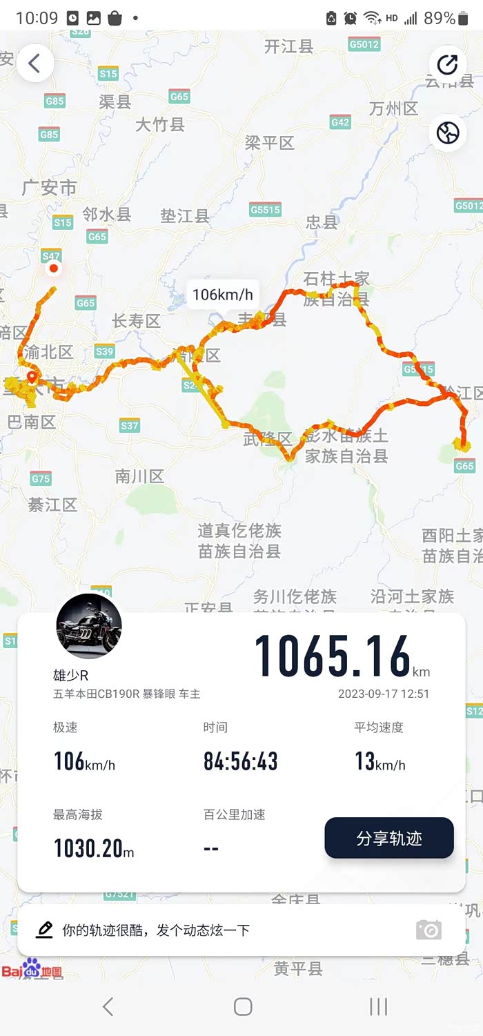 二、路线2重庆摩博会:摩博会展中心-偏岩古镇-金刀峡-濯水古镇-武隆-涪陵-白公馆-磁器口-南岸区。时间2023年9月,里程1065公里。