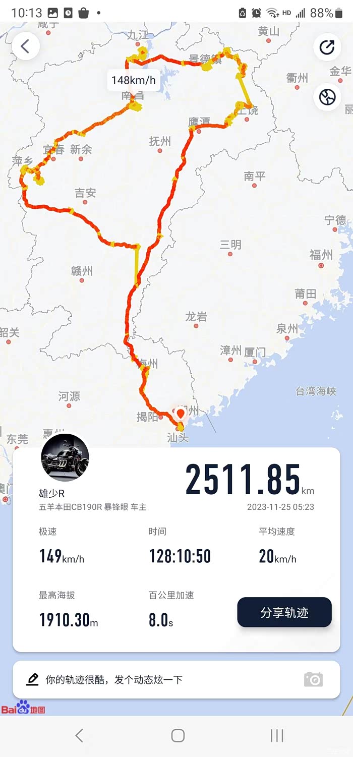 三、路线3环江西游:汕头-萍乡-南昌-庐山-九江-景德镇-婺源-上饶-鹰潭-汕头,时间2023年11月,里程2511公里。