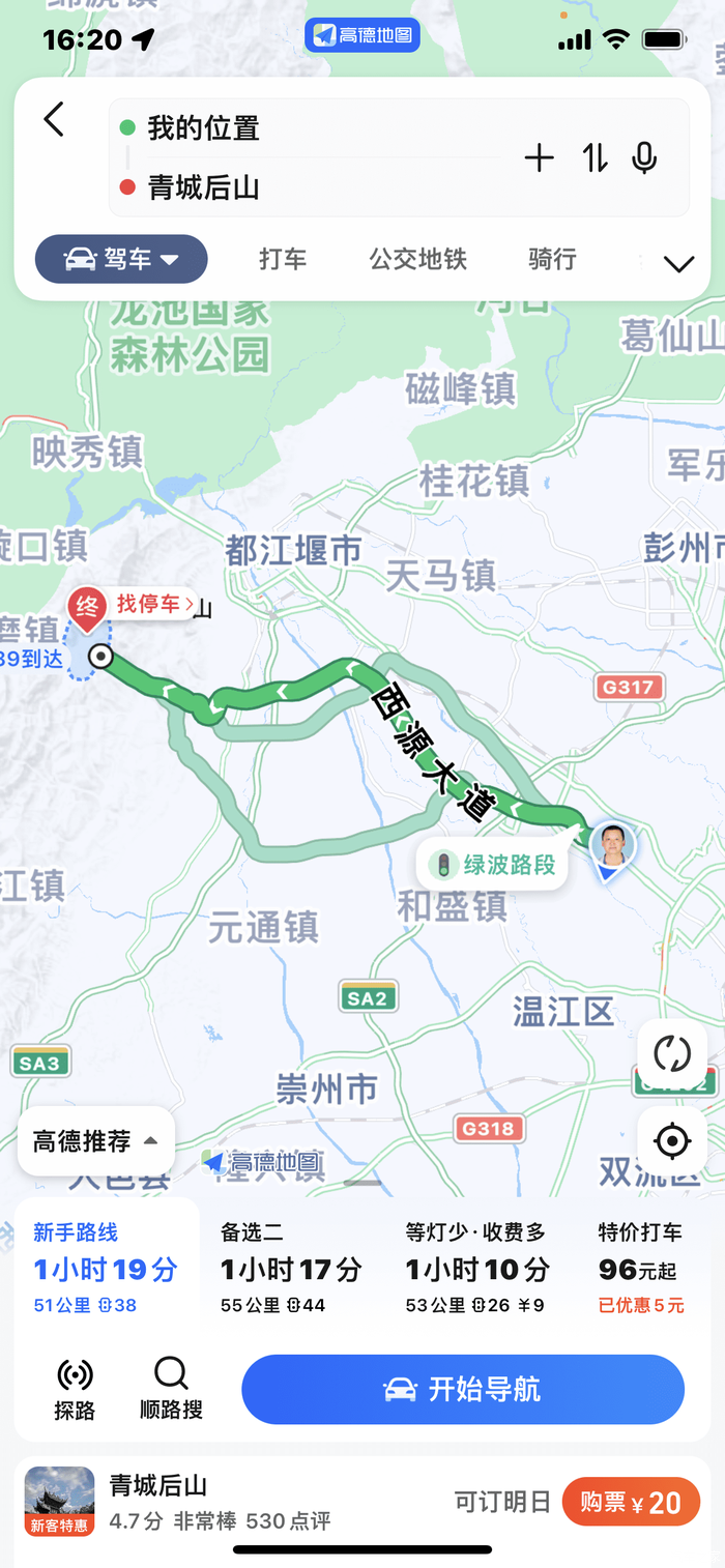 自驾游的时间及路线 时间:2023.07.06—07 路线:成都郫都区—成都青城后山—泰安古镇—成都郫都区 里程:120公里。
