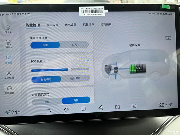 办好事情准备回去了,这次试了智保70%,想对比一下,结果发现电量保不住,刚开始以为可能还没上高速还在城区路上,开的慢所以一直用电了,可上了高速后还是在用电,我确定切换到混动模式了,我又智保调到55%(当时的电量)又开了一会,发现真的保不住,实际电量已经47%了(有图),最后不敢试了,换成强保45%开回去了,还是强保靠谱。等下了高速,距离家不远了,又换成智保了,最后发现不管智保多少没有用,不过到了25%发动机还是介入了,但是我发现,就算25%电量了,在低速的时候,还是会电优先,不知道车友们是不是也这样的,总结一下,就是高速强保靠谱,智保还是算了,反正我是不敢,万一没保住就惨了