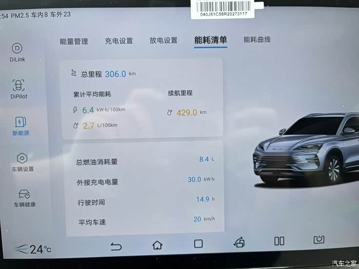 相关车型:宋PLUS新能源 2024款 荣耀版 DM-i 71km 豪华型