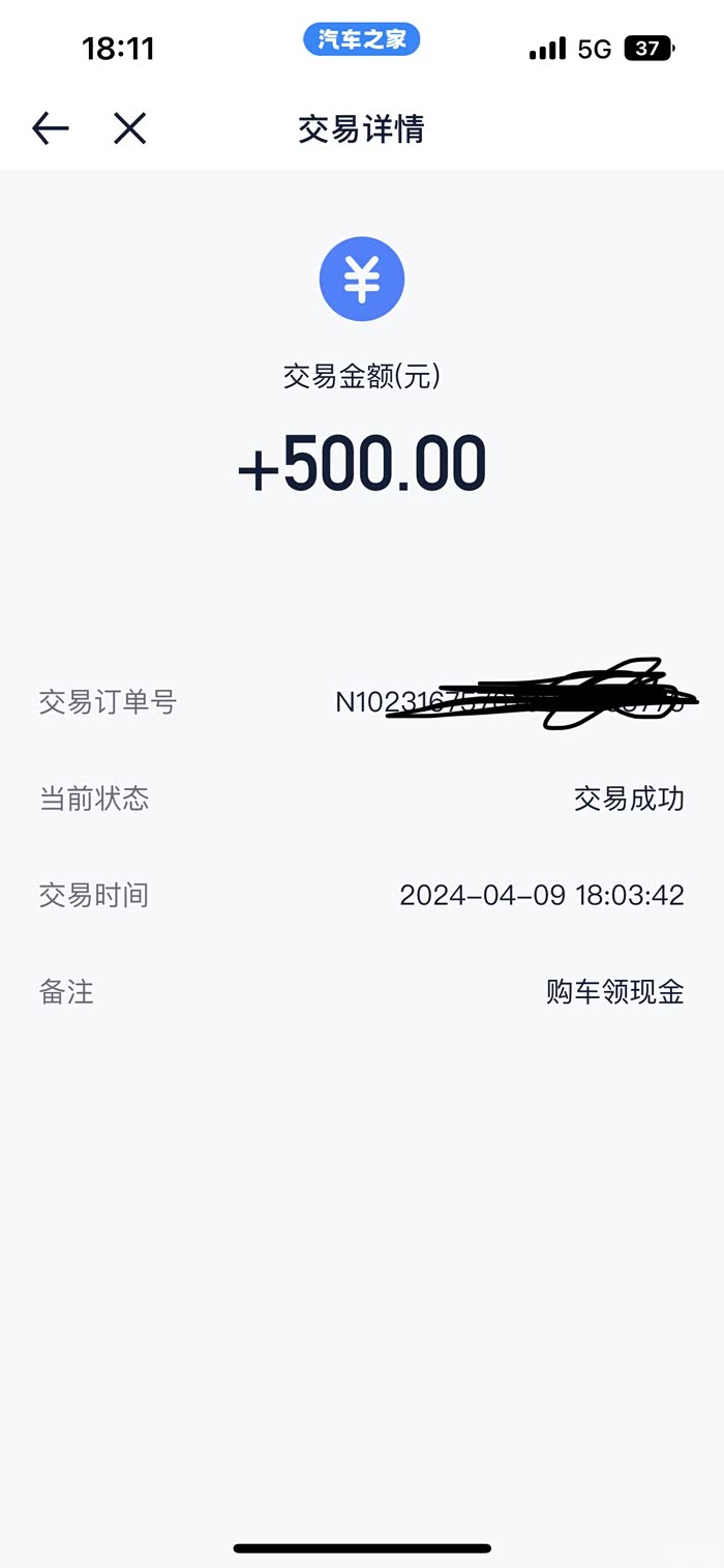最后说一下,这是第一次发帖子,一直以来都喜欢逛各种汽车论坛,就算不买车也喜欢瞎看,之前也买过几次车,但从来没有想过要发表文章,这次是因为有一个意外惊喜(无意间看到了汽车之家春季购车节的补贴活动,抱着怀疑的态度报了名,8号上传了发票,没想到9号晚上6点左右收到短信提醒500元到账了