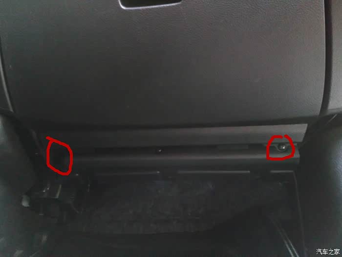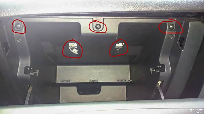 打开手套箱会看到5颗十字花螺丝。用螺丝刀将其卸下。