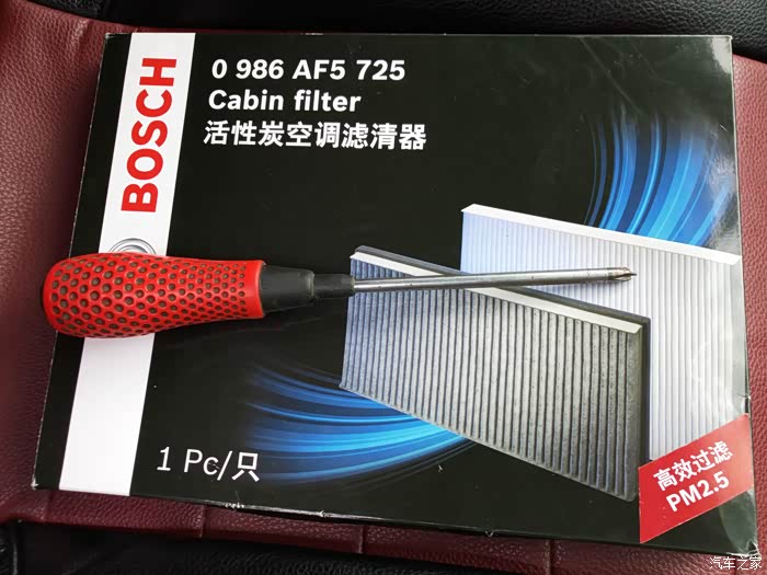 博世活性炭空调滤清器一只,所需工具为梅花螺丝刀。