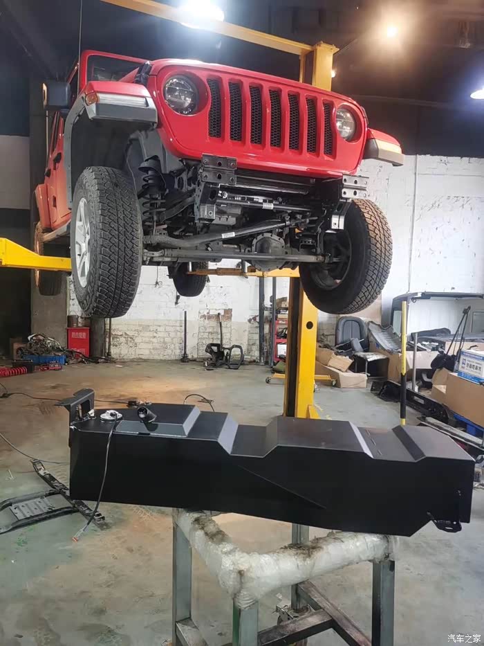 我们这位车主也是个自驾游爱好者,每年都会进行1-2次的长途穿越,为了减少途中加油的频率,提高行车效率,选择了我们这款Offroad skyline 新款牧马人JL 75L 副油箱。
