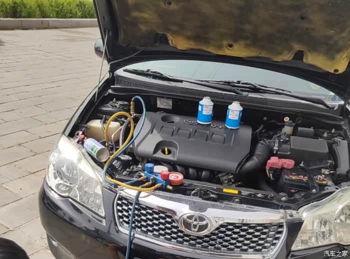 因为已经是十多年老车 ,通过空调观察窗发现制冷剂稍微缺点 既然得买一桶加 不如买两桶全换了 反正也不贵 又能在挺个十年