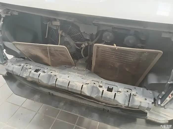 到此结束 , 其实正常跑起来有风前面冷凝器不会太热 ,只有市区跑走走停停 特别是中午, 散热多少决定制冷多少 实在过热会导致压缩机停机保护 长时间也会烧毁压缩机 导致拉缸 原厂风扇因为在水箱后面 而且水箱和前面冷凝器有很大缝隙 市区跑不能很好的给前面冷凝器散热