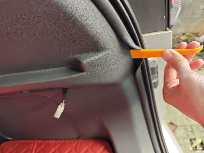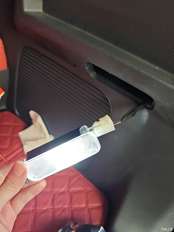 1,首先把后备箱灯用螺丝刀撬开,撬开的时候注意垫一下东西,不然很容易留痕。我就是撬出痕了😰