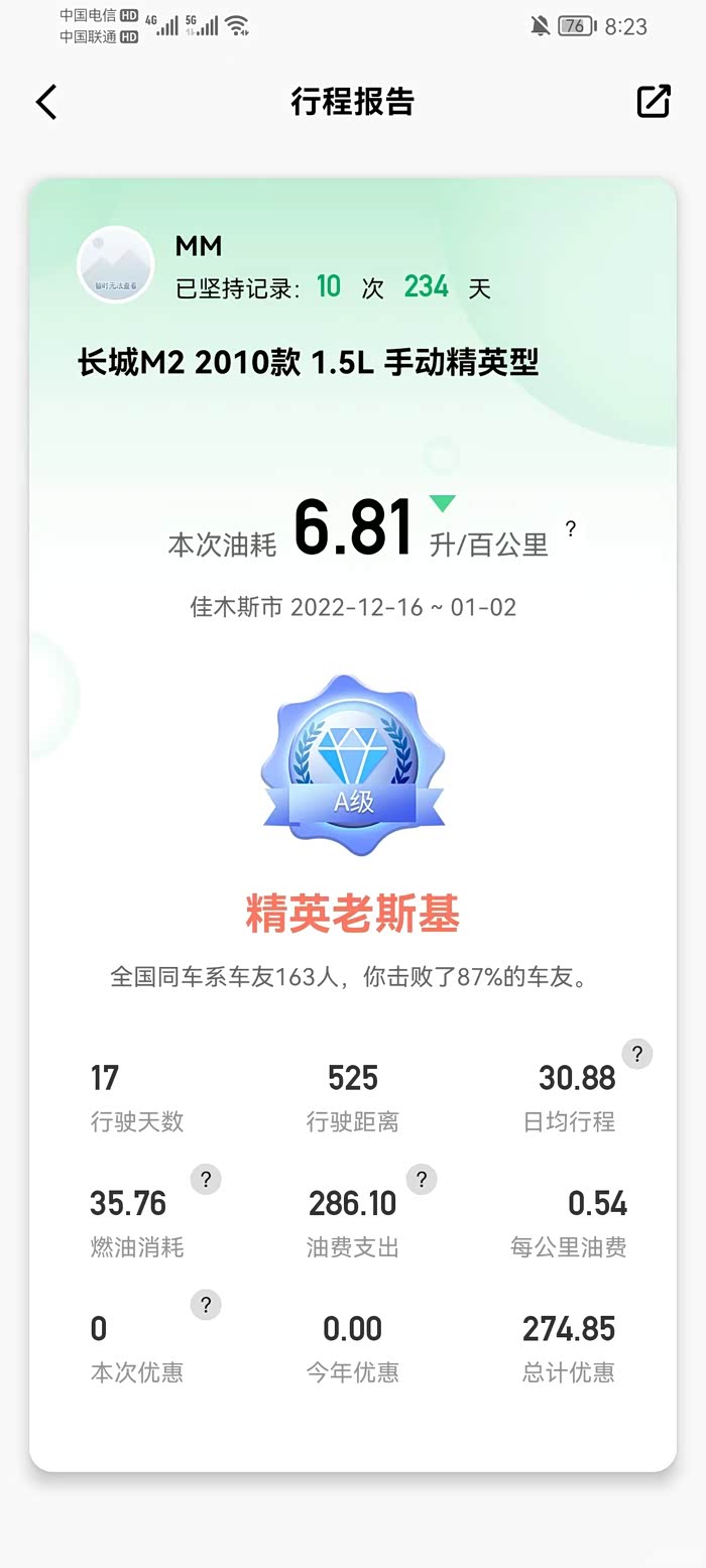 13年6月的车 ,综合油耗7升多点