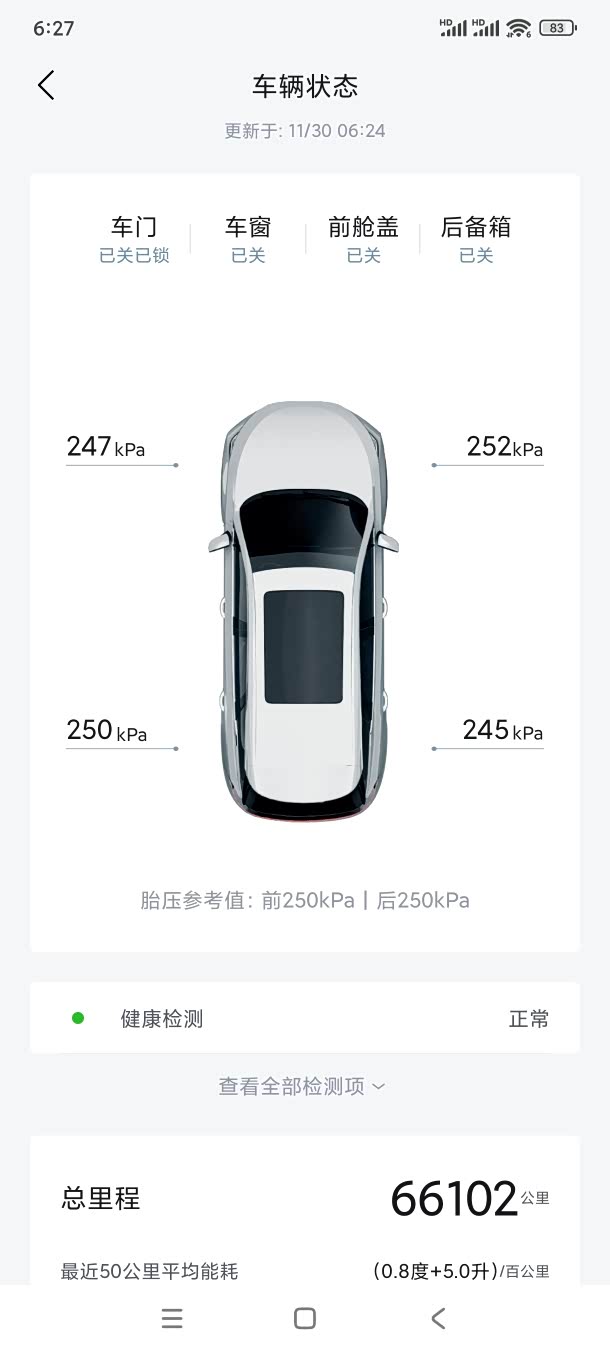 小区地库温度零度左右,每天出门空调25两档,现在的天气和用车环境点亮从100用到25大约可以行驶60-70公里,由于我每天往返客户现场要行驶100公里,要么就回程需要充一些电或者直接用燃油行驶一段,现在外面太冷直接燃油跑到距离家10公里以内再强制EV回家晚上就可以充电了!