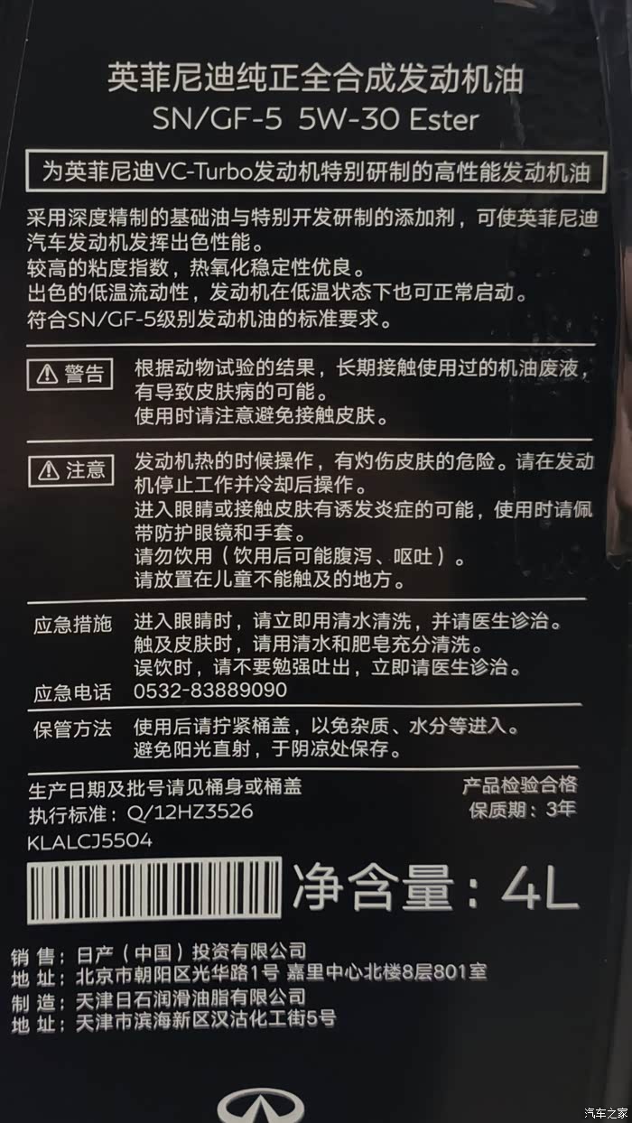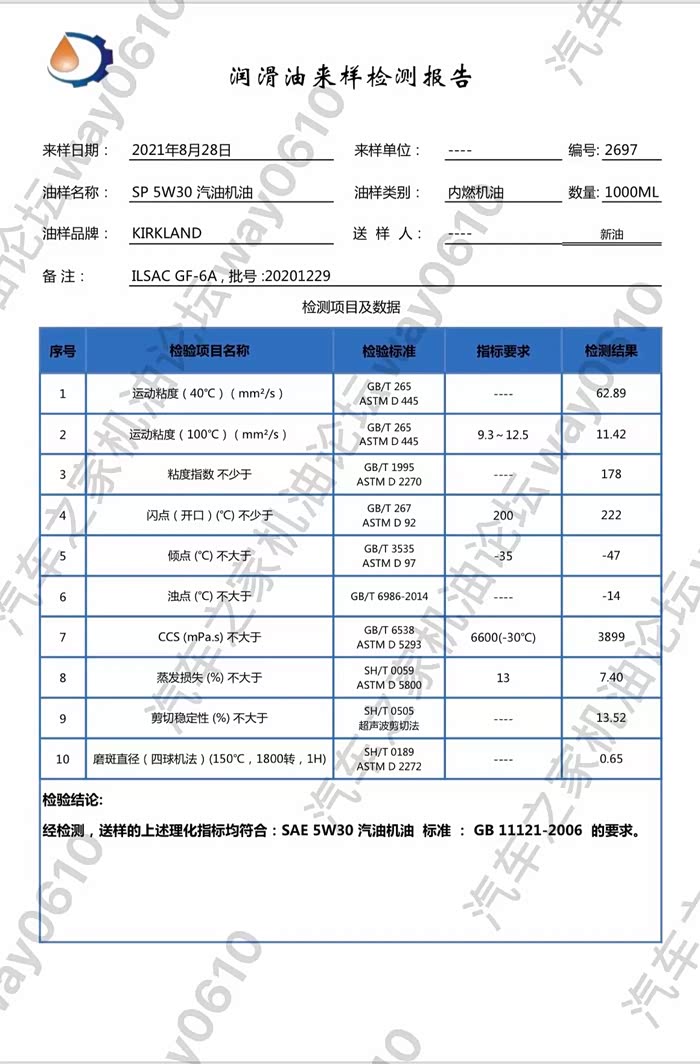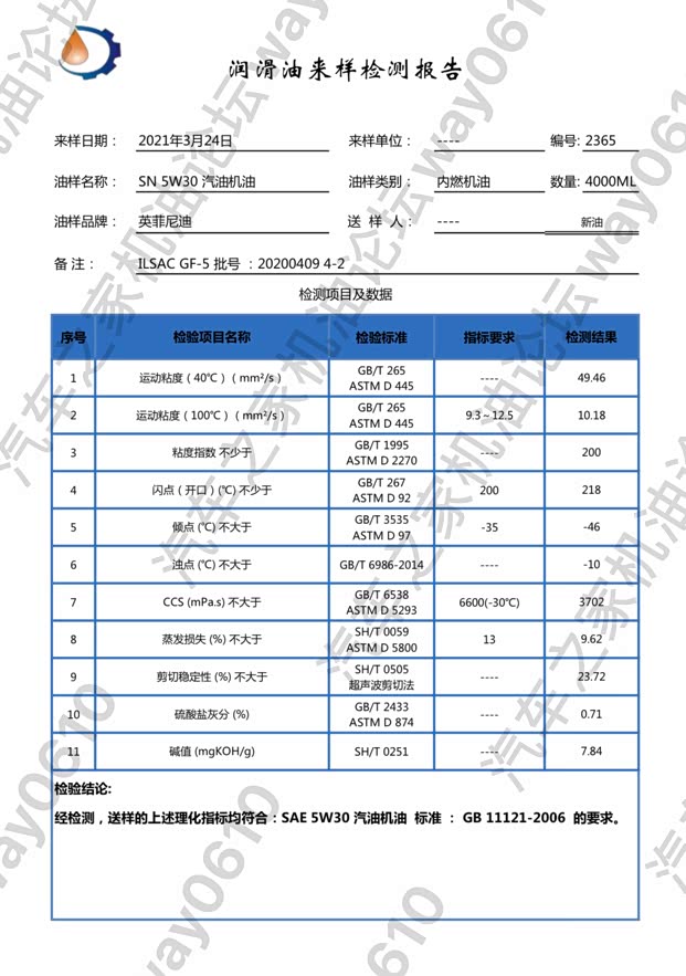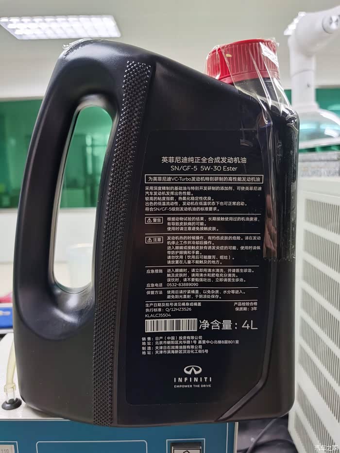 检测只对样品负责,样品由论坛车友“anata083”提供,4升装未开封新油,来自东东英菲尼迪自营专区。