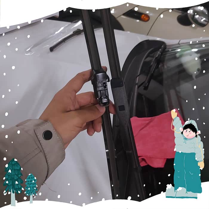 7.冬天用汽车,如果挡风玻璃上有明显的雪或冰,建议在使用雨刮器前将雪或冰颗粒擦掉,避免雨刮器在雪面上摆动而造成变形。
