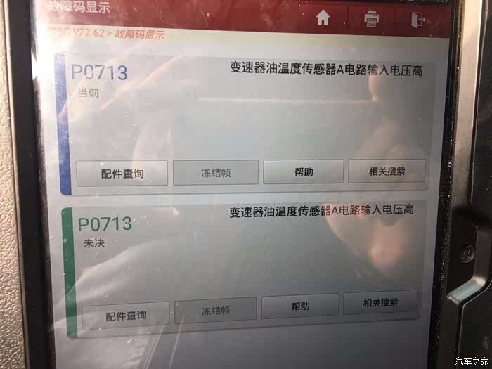 维修技师首先用电脑检测,奔腾变速箱系统故障码显示p0713变速箱油温传感器a电路输入电压高;故障原因基本确定了,广发变速箱师傅先检测了油温传感器线路未发现异常,就拆下变速箱油底壳,对油温传感器进行测试,发现油温传感器在低温向高温环境转换时突然失去信号,很明显油温传感器有问题了,更换一个油温传感器后试车,奔腾变速箱故障彻底解决。