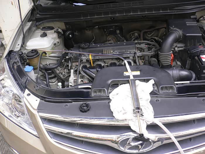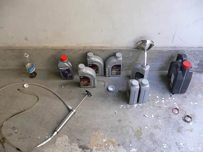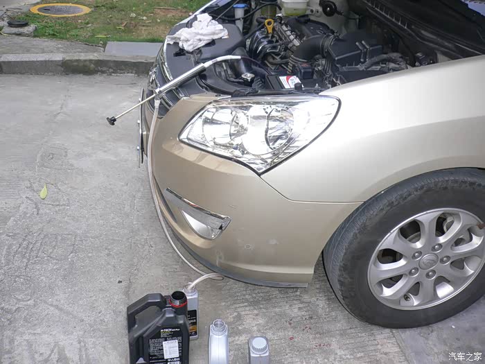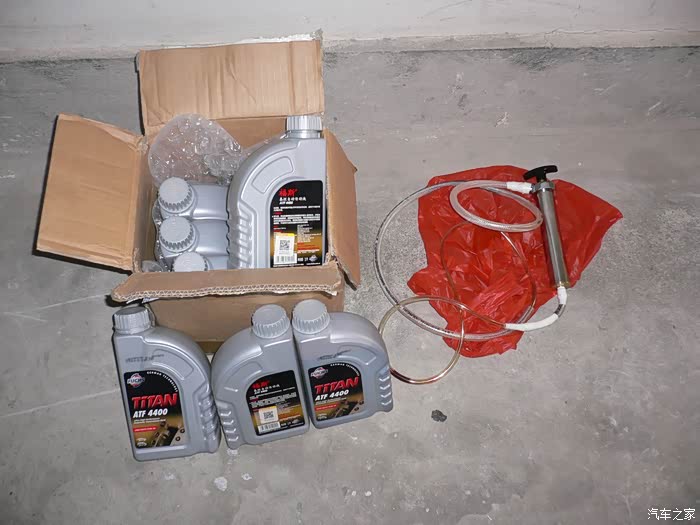 作为车主都很清楚:机油保养在车辆保养中所占分量最大,次数最大,花费也最大;显然机油保养是车辆保养中最为重要的,只有做好机油保养,车辆才能正常运行,不出故障,如果没有做好机油保养,车辆就会出故障,半路抛锚,甚至报废;这取决于机油的作用:润滑防磨损,冷却散热,清洁保护,液压传递动力,碱性防腐蚀。既然机油有那么多重要作用,作为车主要保养好车,首先就要做好机油的保养,要做好机油保养就要对机油有一定的认识,根据机油的不同作用选择好适合自己的车用机油,同时了解真假机油的辨别;在这里要感谢汽车之家给广大车友提供了汽车论坛平台,感谢机油论坛给大家提供了学习认识机油的空间,感谢平安大哥对机油论坛的精心管理和无私奉献,给大家提供了一个好的学习认识机油的环境氛围。 我的车已经使用将近6年5万公里,坚持每5千公里做一次机油加三滤的保养,首保后,发现4S的机油质量很一般,衰减很快,于是开始自己选择机油,找出适合自己车用的机油,坚持5千公里一换,就一直用到现在;现在车已经近6年5万公里,必须换新变速箱油,转向机油,刹车油等全车机油,通过论坛的学习与认识,选好合适自己车的变速箱机油,转向机油可以用变速箱机油,选择车友用得最多的刹车油;我的车是自动挡的,变速箱机油必须选自动挡用的,而且要选择有SP3认证的才适合我的车,最终选定福斯4400自动变速箱油,能满足我的车需要,然后下单提货,准备自己动手换油。 更换变速箱机油有3种方法,重力放油法,脏油抽出法,机器循环更换法,想自己动手只有采用脏油抽出法最方便,省事省钱,效果也很好,为了完成换油,特地买来一把机油抽出器,这样就轻松自己完成换油。