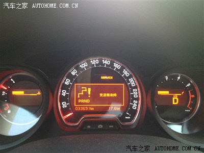仪表盘上SERVICE亮起,同时D档边上闪烁雪地+S提醒。车还在正常行驶,我下意识的按了一下CHECK键,离下次保养还有14X00公里!变速箱故障!就只能显示3档,不能变速了。