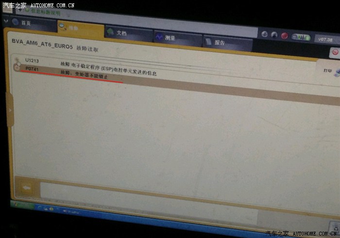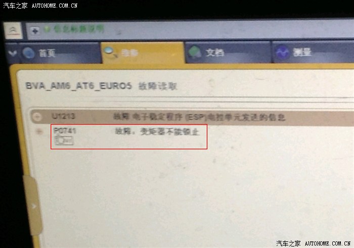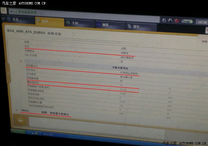 赶赴4S店,告知故障情形后,4S店员并没有吃惊,估计也遇到了几次类似的问题现象。然后召唤技师电脑检测,确定故障为“P0741变拒器无法锁止”。