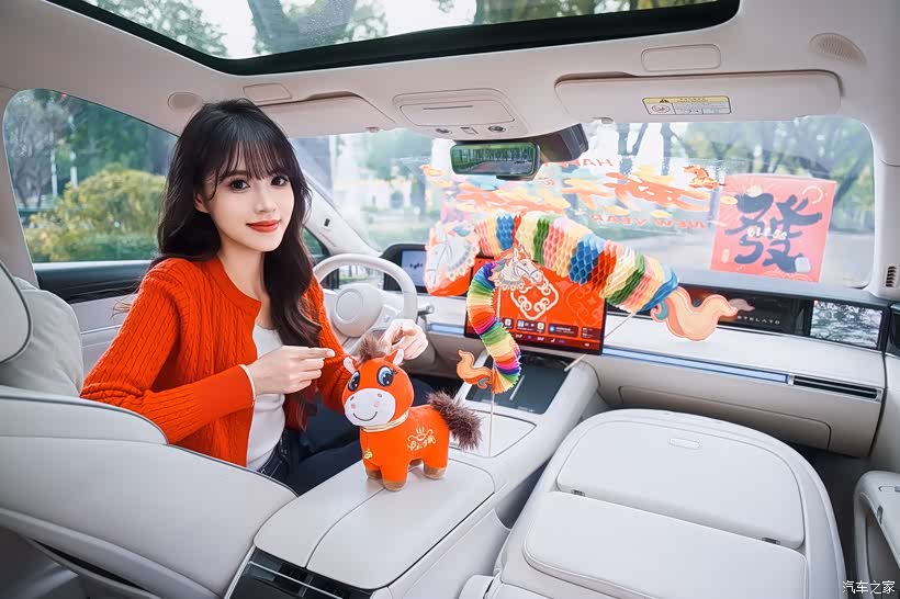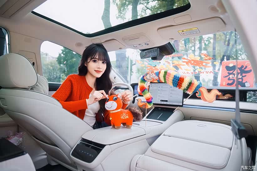 妹妹的祖母绿享界S9和马年的红色元素摆在一起时,瞬间就被这种碰撞的美感击中了。虽然享界S9的定位是C级车,但它的内部空间比肩D级车都绰绰有余了。