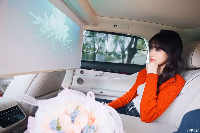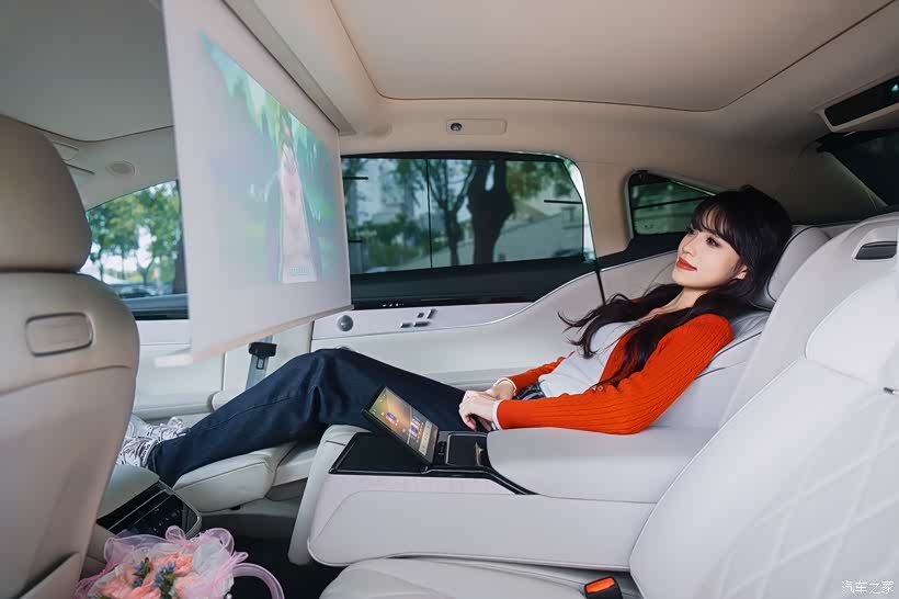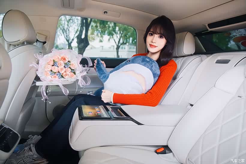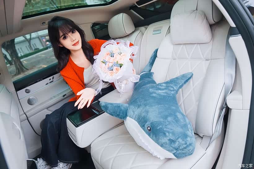 投影幕布是妹妹比较喜欢的一个功能,特地选装的配置。搭配HUAWEI SOUND音响,效果还是很不错的,看过好几次电影都是很沉浸的。看着她靠在座椅上,专注地看着屏幕里的画面,我突然明白,豪华从来不是堆砌配置,而是在细节里藏着的用心。那个蓝色的鲨鱼玩偶,就安静地躺在她身边,成为这场浪漫约会里最可爱的点缀。