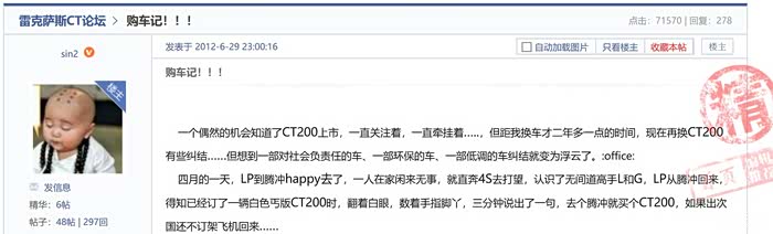 年初,开始扫描做功课,思前想后最后还是锁定在雷车,因为这车太让人不操心了,从2004年一共换了4辆车,体验过韩国起亚千里马、东风马自达,雷克萨斯4S店的服务,雷克萨斯4S店的服务既不媚态又不傲慢,6年在4S店里只自费了一块蓄电池的钱。